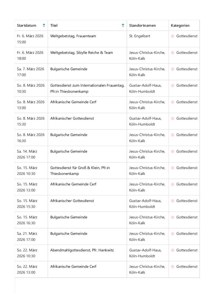 auf den Seiten der Evangelischen Kirchengemeinde Kalk-Humboldt! Hier finden Sie Informationen zu den Menschen, Themen und Terminen unserer Gemeinde. Wenn Sie Fragen haben, nehmen Sie gerne Kontakt zu uns auf.